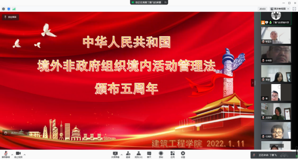 为了增强师生法律意识和国家安全意识,按照河南省教育厅《关于组织开展<境外非政府组织境内活动管理法>实施五周年普法宣传周活动的通知》和公司有关工作要求,2022年1月11日,建筑工程公司党总支利用线上腾讯会议的形式组织全体教职工学习了《境外非政府组织境内活动管理法》,会议由公司党总支书记马春燕主持。