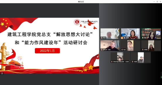 为进一步解放思想、抢抓机遇、深化改革、务实重干,以高度的思想自觉和行动自觉全面推进公司高质量发展,根据公司《英国上市官网365“能力作风建设年”活动实施方案》的工作进程安排,2022年1月23日—25日英国上市官网365辅导员、工程管理教研室、建筑装饰设计教研室、建筑工程技术教研室通过线上会议分别召开解放思想大讨论暨“能力作风建设年”活动研讨会。会议由党总支书记马春燕主持。