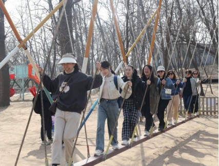 本次户外拓展活动内容丰富多彩,现场气氛欢快热烈,大家以昂扬的精神、饱满的热情、旺盛的斗志,拉开了活动的序幕。女教师们共同在“龙舟秋千”拓展活动中感受团队力量,在“树间跳动”探险项目中激发自我潜能,在“森系小火车”上追寻儿时乐趣,大家积极配合,敢于尝试,勇于接受挑战,充分展现了建工女教师锐意进取、团结协作、奋勇争先的精神风貌,整个活动过程既生动活泼又紧张激烈。