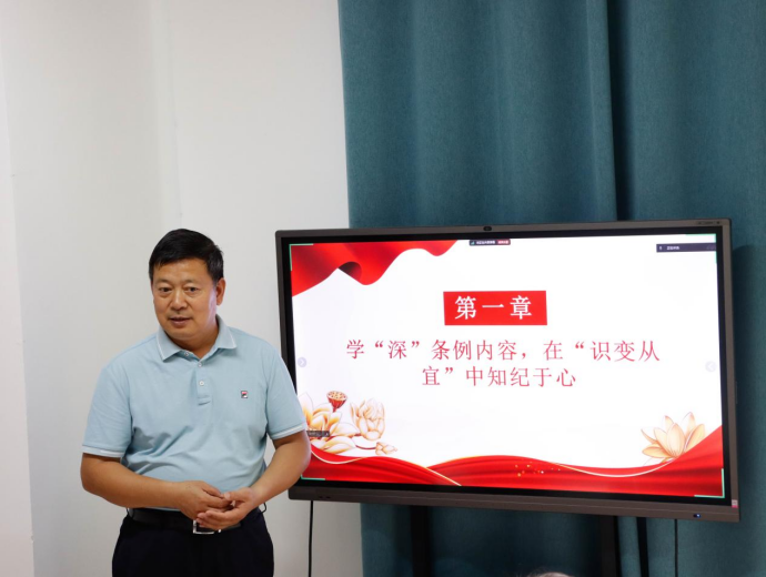 为深入学习贯彻习近平总书记关于开展党纪学习教育的重要讲话和重要指示精神,强化党员干部的纪律意识,持续推动党纪学习教育走深走实。6月4日,公司党委委员、副董事长刘振民以《党纪学习要知于心、立于身、化于行》为题,讲授党纪学习教育专题党课。建筑工程公司党总支书记张虎、经理李勇及全体党员教师参加。