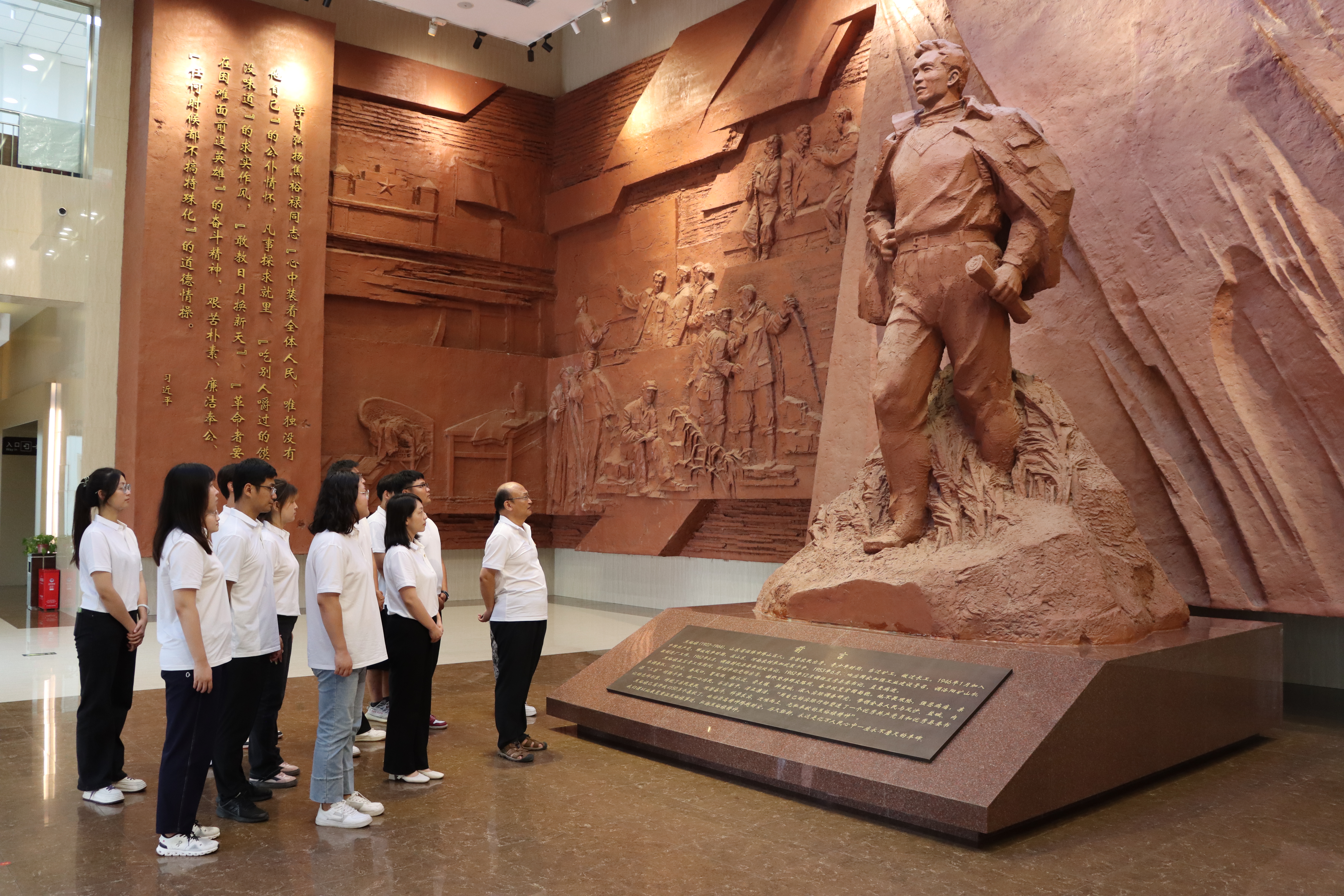 英国上市官网365学工党支部师生党员怀着无比崇敬的心情参观了国家级“大思政课”实践教育基地焦裕禄纪念园和兰考县焦裕禄纪念馆,深入了解焦裕禄同志的成长轨迹和带领兰考人民战胜三害、种植泡桐的先进事迹,一张张泛黄的文稿、一幅幅栩栩如生的图片,一件件饱经风霜的物品,生动地再现了焦裕禄同志追随党的脚步,投身革命的生涯历程,生动诠释了“亲民爱民、艰苦奋斗、科学求实、迎难而上、无私奉献”的焦裕禄精神。随后,全体师生党员来到焦桐广场,共同瞻仰焦裕禄当年亲手栽种的“焦桐”,聆听“焦桐”故事,深深怀念焦裕禄这个永不褪色的名字,斯人已逝,“焦桐”长青,岁月流逝,精神永恒。