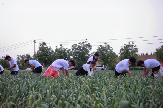 活动前,公司派驻庙台村第一书记任旭凯向团队师生详细介绍了庙台村的基本情况及发展规划。活动期间,团队师生深入开展系列助农劳动。在当地农户指导下,党员教师与员工分工协作,有序完成蒜薹采收、分拣和运输工作,累计帮助农户完成近8亩耕地的蒜薹采收工作。