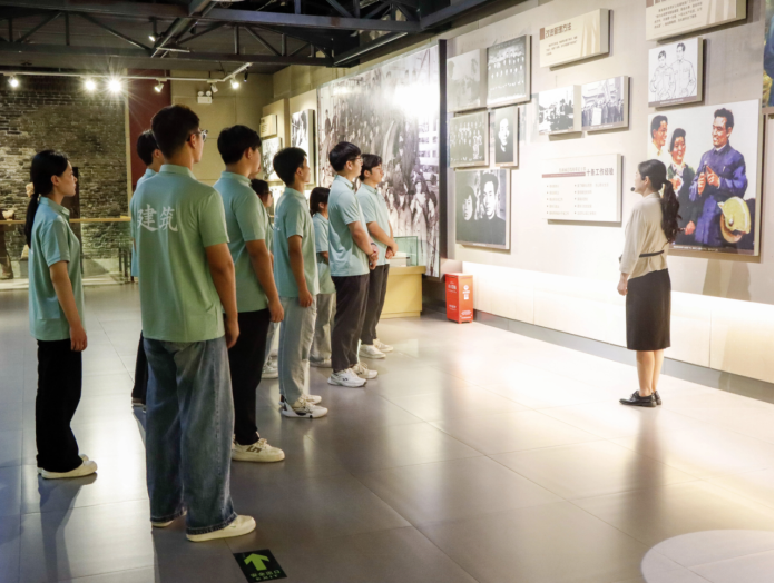 志愿队首站来到焦裕禄纪念馆。墙上的老照片里,焦裕禄同志在沙丘上丈量的身影,与玻璃展柜中他带病还在想着治理沙丘形成鲜明呼应。这让“小筑”队员们想起专业课上反复修改的设计图,同样是用线条勾勒未来,前辈的笔下却写满了“把群众的事当自家事”的赤诚。从红船启航时的庄严誓言,到焦书记“心中装着全体人民,唯独没有他自己”的践行,变的是时代考题,不变的是共产党人“把根扎在人民中间”的坚守。