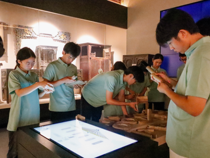“小筑”志愿服务队首先来到中原家居博物馆。馆内陈列的中国古代家具,品类丰富、工艺精湛,从雅致的唐宋木构家具,到华丽的明清雕花桌椅,全方位展现了中国古代家具的演变轨迹与匠艺精髓。