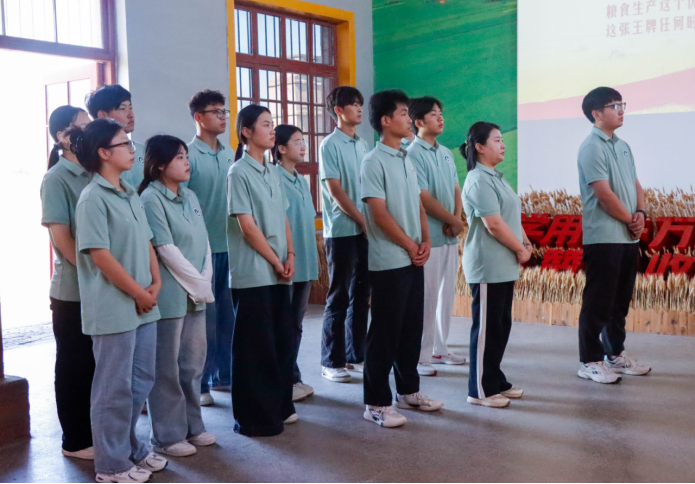 离开博物馆,服务队来到兰考县仪封镇。在丰收馆,队员们沿着兰考农业发展的时间轴线缓缓前行,馆内系统展示了兰考农业从艰难起步到蓬勃发展的壮阔历程,详细呈现了兰考人民直面“内涝、风沙、盐碱”三害,在党的领导下战天斗地、改造自然的奋斗史诗;学用馆内,当地农民从最初的摸索尝试到如今的科学种植,展现了兰考人民在农业发展中不断学习、勇于实践的态度;为农服务中心,现代化的服务设施让队员们看到了当下兰考农业在政策支持、技术保障下的崭新面貌,更感受到了乡村振兴的强劲动力。