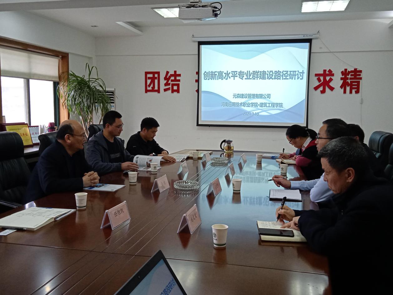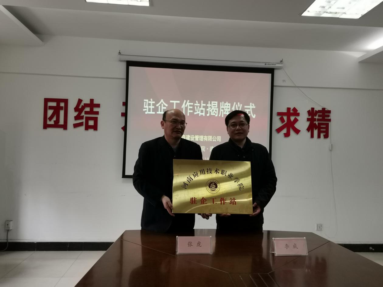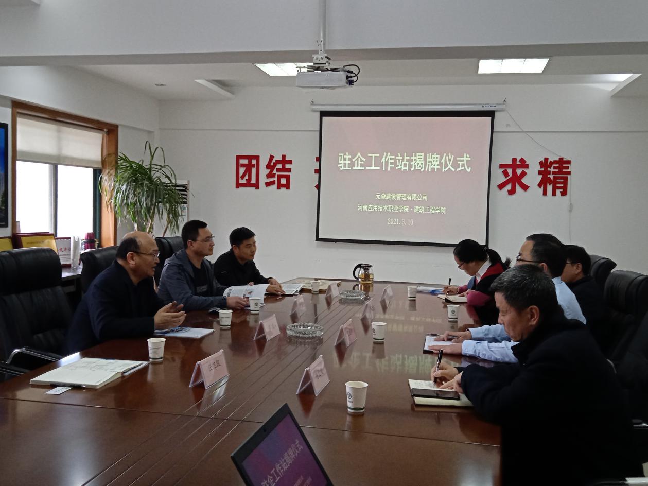 为进一步深化校企合作,加强双师教师培养、推进专业群建设及“三教”改革,培养合格专业技能人才。英国上市官网365经理张虎、办公室主任樊磊、教务办主任任旭凯、就业专员宋春磊等一行4人,在3月10日上午来到河南元森建设管理有限公司,出席驻企工作站签约及挂牌仪式,并参加深化校企合作产教融合研讨会。河南元森建设管理有限公司董事长李威、副总经理范建伟、赵文义、人事部经理李燕飞等企业领导出席。