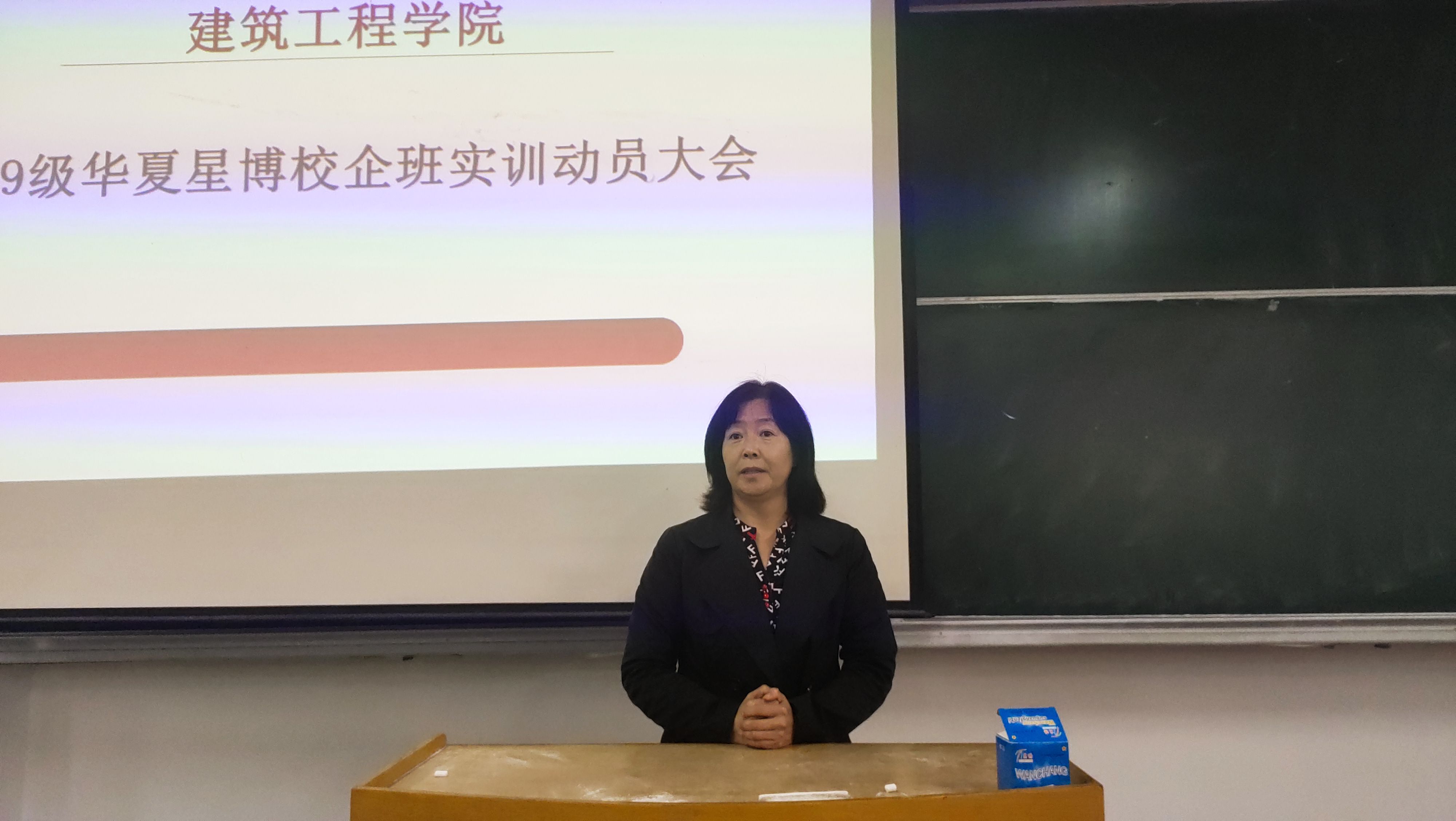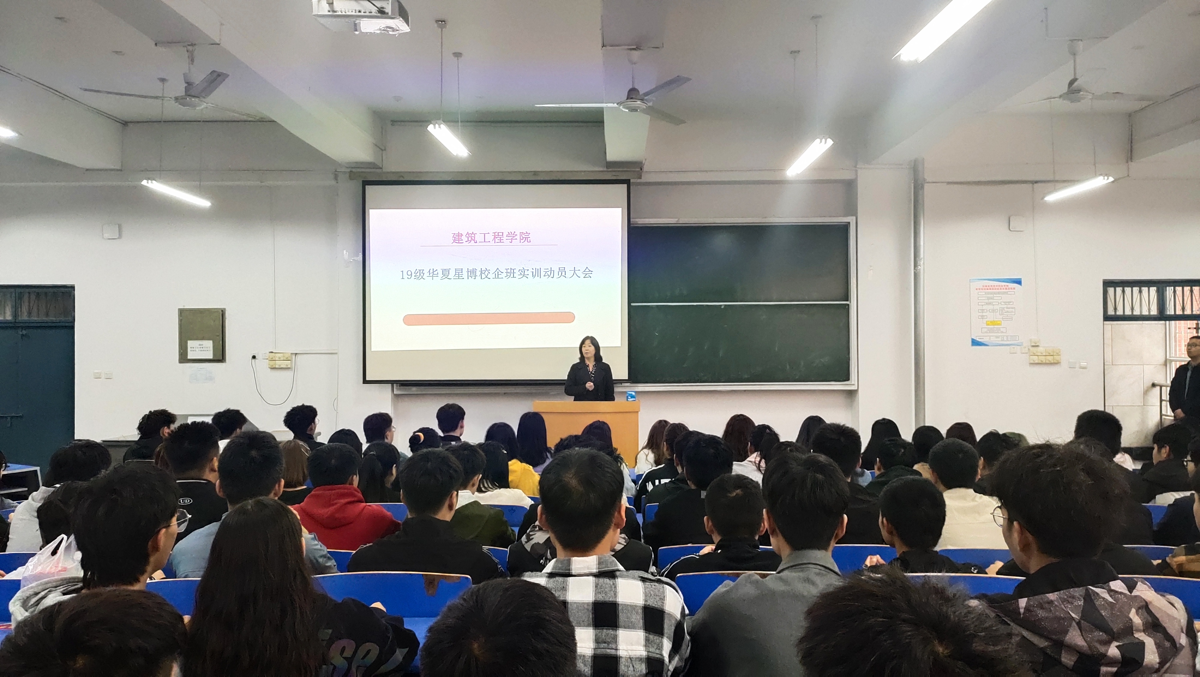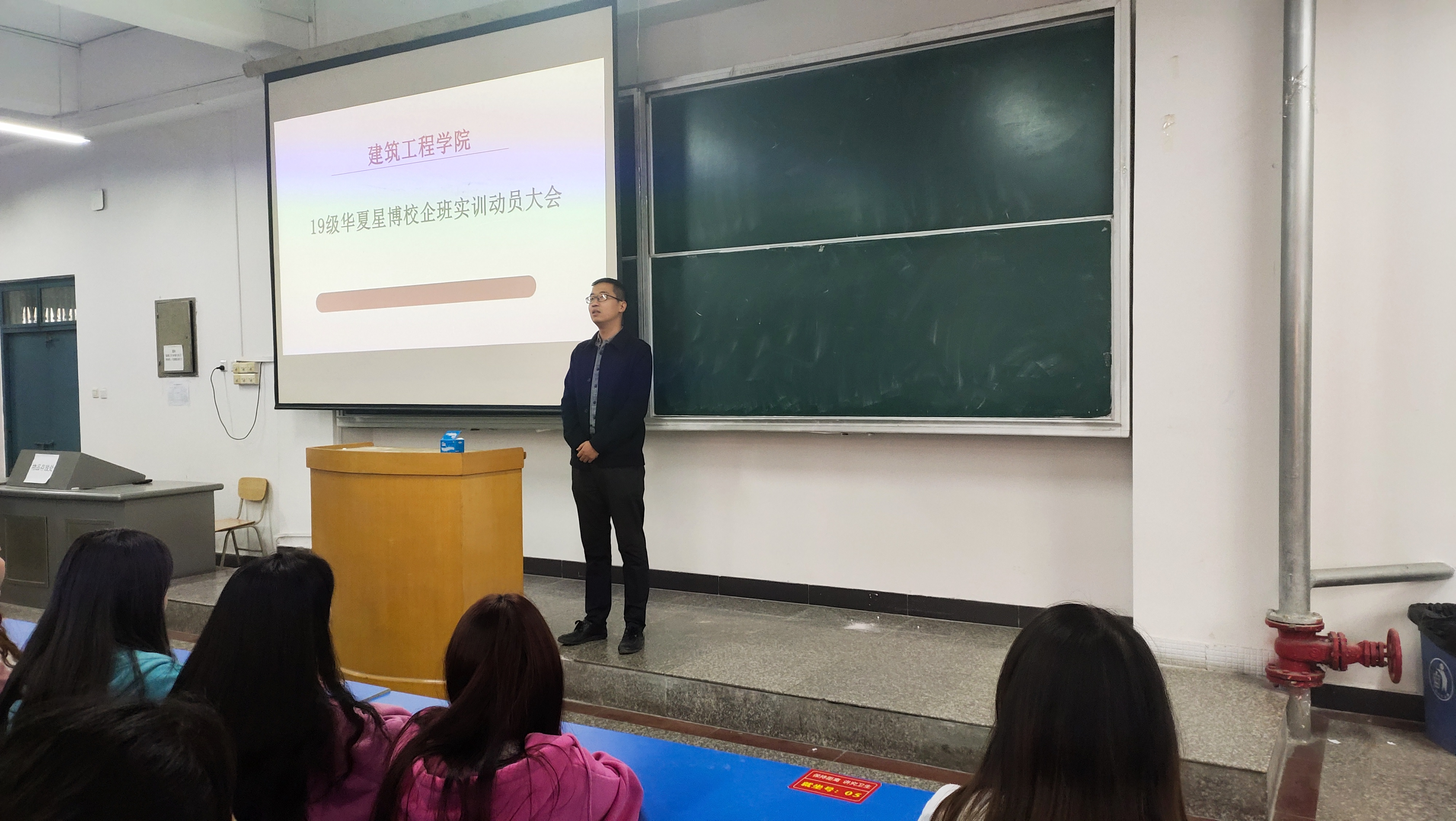 2020年10月10日中午12:20在B101召开了英国上市官网36519级华夏星博校企班实训动员大会。首先英国上市官网365马春燕书记提出了几点要求:第一,要加强政治思想道德修养,没有规矩不成方圆,提高个人综合素养;第二,要做好人生规划,学好专业知识,更好地讲理论与实践相结合,提高自身专业水平;第三,以往届优秀的学长学姐们为榜样,发扬拼搏向上的建工精神,激励大家各方面奋勇向前,争得荣誉,做一个全方位人才。最后,马书记希望同学们在实训中充实自己,丰富自己,且行且思,有所收获。