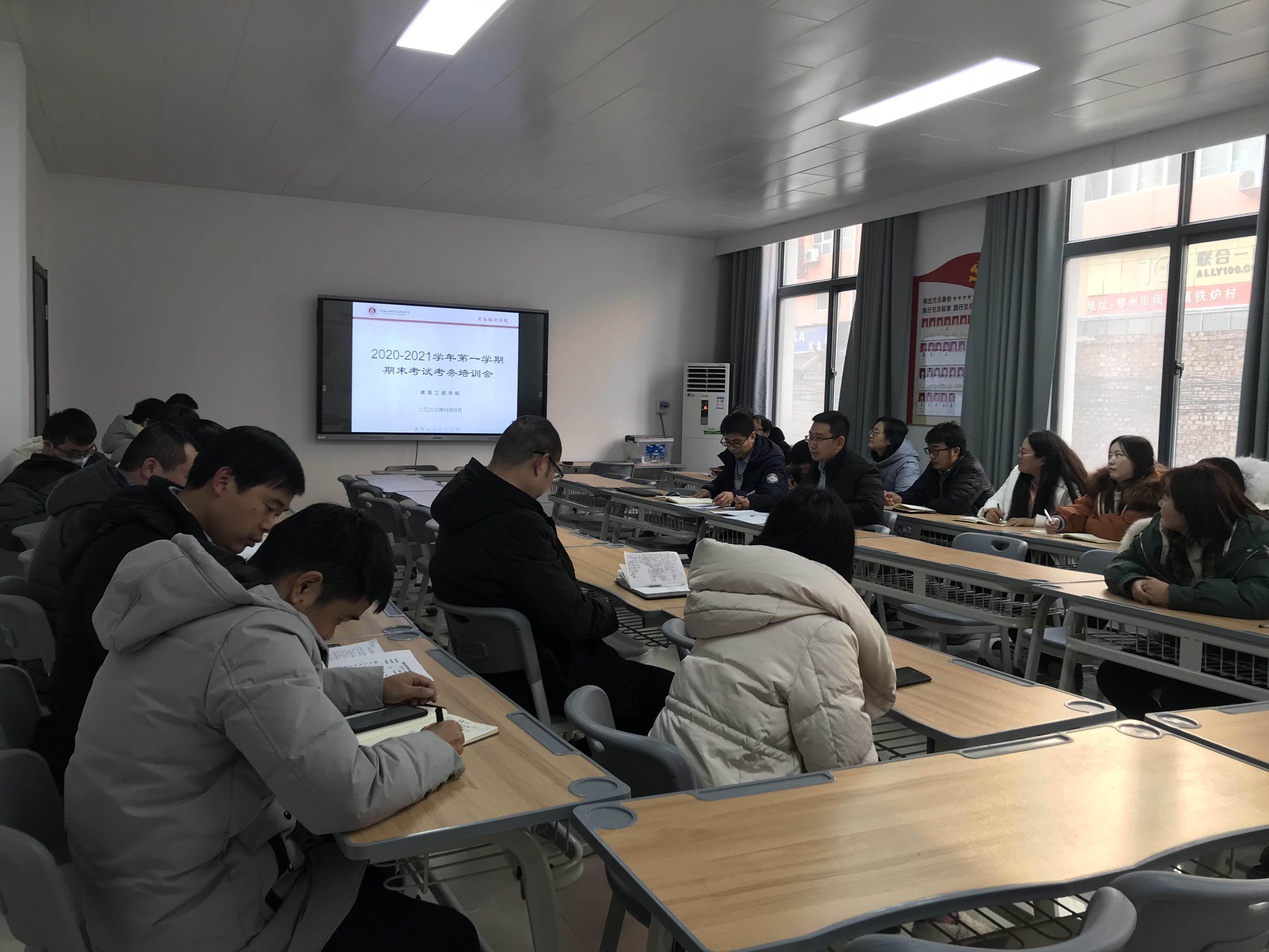 首先,副经理娄焕安排部署了2020-2021学年第一学期期末考试工作,向英国上市官网365全体教师及基础教学部支援教师进行了考前培训,强调了考务纪律,明确了监考、考务等岗位的职责,确保期末考试工作安全、平稳、顺利的完成。