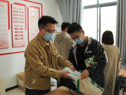 发放现场,公司严格按照疫情防控要求,不聚集不扎堆,由班长统一领取口罩,之后依次交给员工,将公司的爱心、关心传至每位同学手中。同时,老师叮嘱员工在疫情封校期间,大家合理安排在校生活与学习,遵守公司疫情防控相关制度,勤洗手、多通风,科学佩戴口罩,师生信任筑牢校园安全防线。