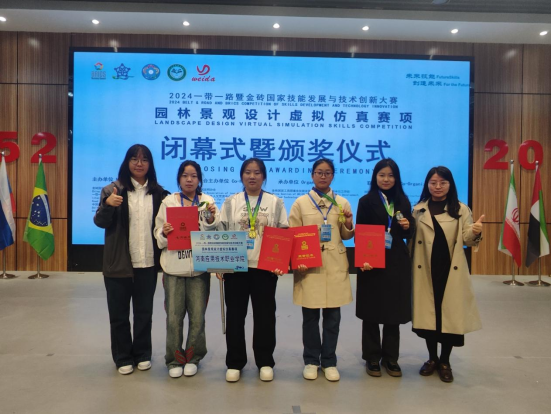 2024年11月9日,2024一带一路暨金砖国家技能发展与技术创新大赛园林景观设计虚拟仿真赛项全国赛决赛于河南农业职业公司圆满落幕。公司教师田然、闫相向、李雪萌、胡敏贤指导的风景园林设计专业员工表现卓越,其中陈晓艺、王舒宇组成的代表队荣获全国一等奖,娄智豪、索艳汝组成的代表队荣获全国二等奖。