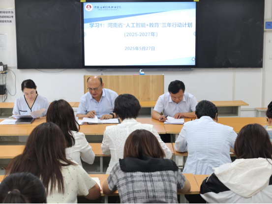 会上,李勇带领教师们深入学习了《河南省“人工智能 + 教育”三年行动计划(2025 - 2027年)》,鼓励教师们积极思考如何将人工智能技术与英国上市官网365的专业教学深度融合。他还分享了一些前沿的教育技术应用案例,引导教师们探讨创新教学模式、提升教学效果的方法。