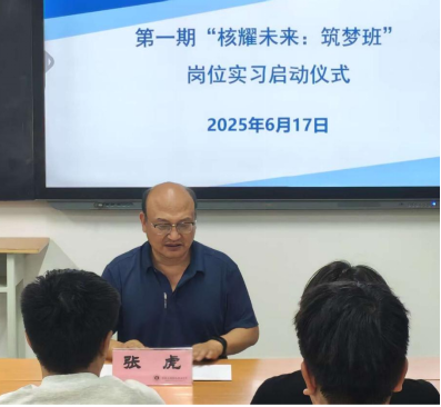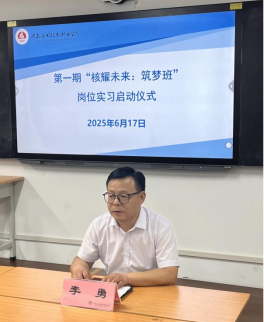 经理李勇介绍了本次“核耀未来·筑梦班”设立的深远意义,希望同学们在岗位实习中将理论知识与实践相结合,将知识转化为生产力,提高自己的实践应用能力,用专业能力为社会和企业创造价值。