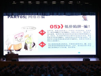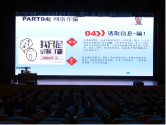 宋春磊围绕宿舍安全、网络安全、消防安全、财物安全、校外安全、人身安全五个方面,并结合工作经验,用幽默风趣的话语,列举众多典型事例,以同学们喜闻乐见的形式进行讲解,深入分析了在校员工人身和财产安全受威胁的原因,并提出了具体应对策略,提醒同学们在与不熟悉或身份不明的人员接触时一定要提高警惕、谨慎言行,不要轻易将个人信息透露给陌生人,更不要轻易相信对方,要保障自身安全。与此同时,他还倡导同学之间要和谐相处,相互宽容,以合法、合理、合情的方式解决分歧。