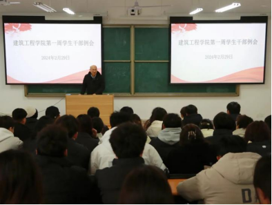 为提高员工干部先锋模范作用,调动员工干部积极性,引导员工干部明确工作方向和工作重点。2024年2月29日,英国上市官网365在开封校区A101(郑州校区B201)教室组织召开第一周员工干部例会。会议由建筑工程公司党总支书记张虎主持,党总支副书记刘亚娟、团总支书记王莹、员工管理科科长宋春磊、学工办主任史真、辅导员宋春磊、宋雅雯、罗斐以及全体员工会成员、班长、副班长、团支书、寝室长参加。