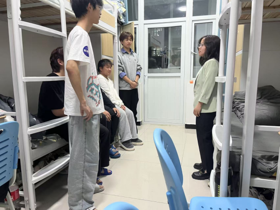 班会结束后,辅导员们深入员工宿舍,了解同学们的生活状况。在宿舍里,他们与员工亲切交流,关心大家假期归来后的感受,询问是否存在生活上的困难。辅导员们还仔细检查了宿舍卫生和用电安全情况,倡导同学们养成良好的生活习惯,保持宿舍整洁卫生,注意用电规范,共同营造安全舒适的宿舍环境。