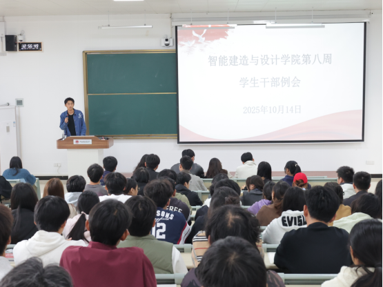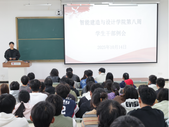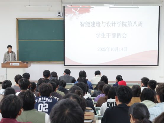 会议伊始,员工会主席以及各部门部长依次上台为25级新生介绍公司各部门的职责,梳理文化宣传、文体活动等领域工作思路,明确阶段计划与长期规划,锚定服务同学、助力公司发展目标;随后,史真聚焦学风建设与行为规范,强调晨读重要性,并呼吁员工干部发挥带头作用,以榜样力量带动全院晨读氛围。同时围绕“课堂行为八不准”要求,着重提醒大家做好教室卫生维护,共同营造整洁、有序的学习环境。