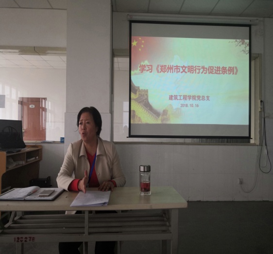 根据公司的工作安排,2018年10月16日下午3:30,在E311英国上市官网365全体专兼职教师和行政人员在总支书记马春燕的带领下,认真学习了郑州市文明行为促进条例。