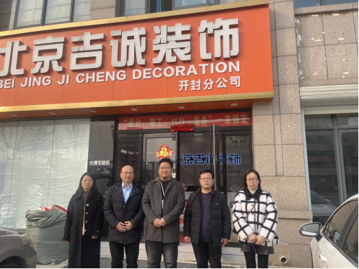 分公司经理徐寿跃热情接待张虎一行,对公司进行了参观并进行了座谈交流,座谈会上,徐寿跃介绍了公司的基本情况,北京吉诚装饰是北京恒基经贸下直营家装品牌,是一站式家装的倡导者,“全能精装、省心到家”的整房装修模式引领着行业发展,公司目前为河南大学、开封大学、黄河水利职业公司等公司提供在岗实习岗位和就业岗位,开展有良好的合作。张虎介绍了公司的专业设置、团队队伍、实习就业等情况,希望与企业在员工培养、团队共建等方面开展更加广泛和深入的合作。