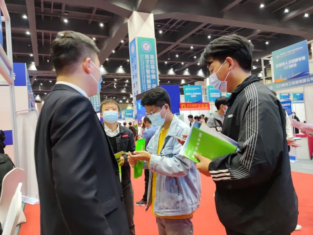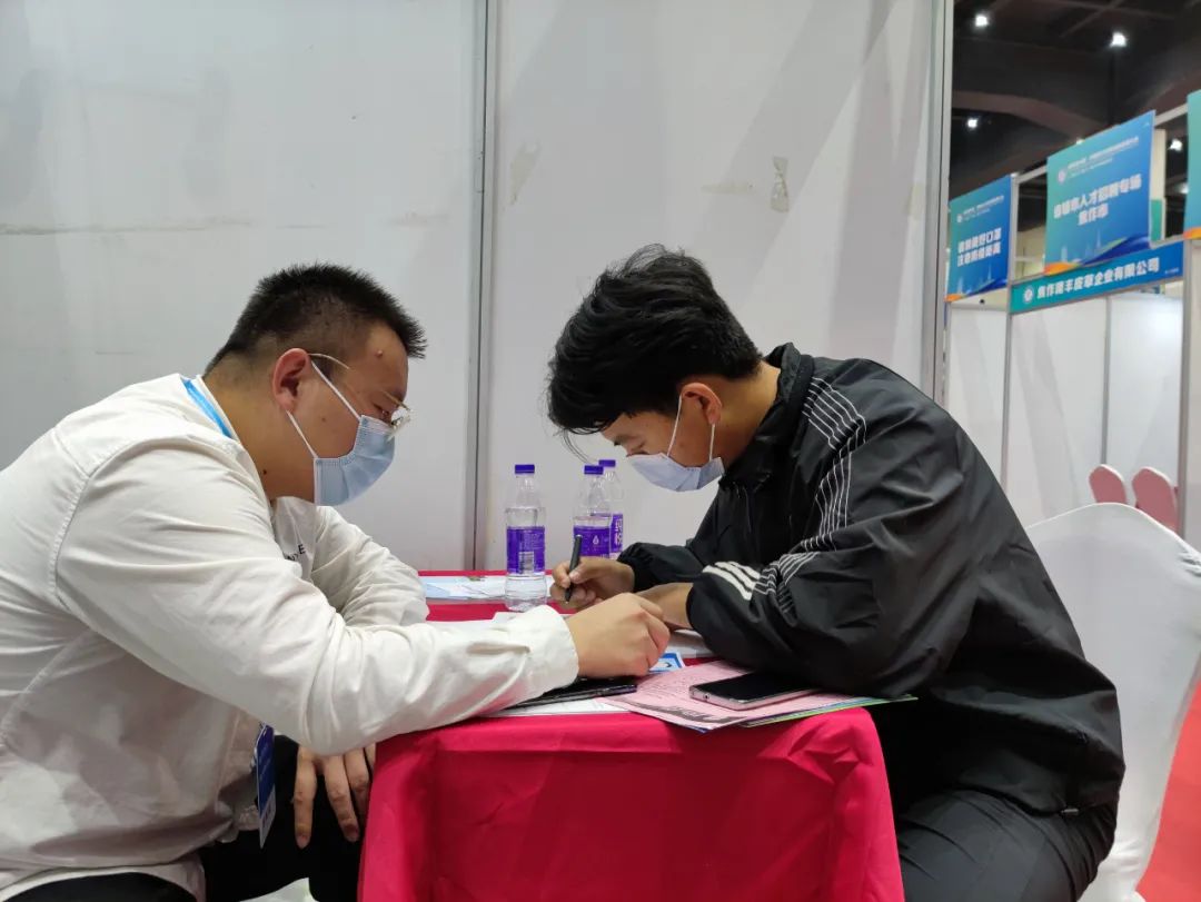 同学们根据疫情防控要求戴好口罩、扫码测温排队入场。进入场馆后,各类企业、事业单位、人才项目、重大科技项目的招聘展区前门庭若市,聚满了前来投简历、咨询的求职者,同学们根据自身求职需求咨询选择相应的专区观看。