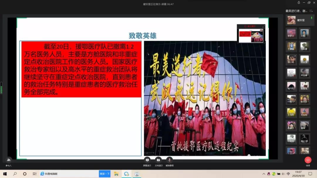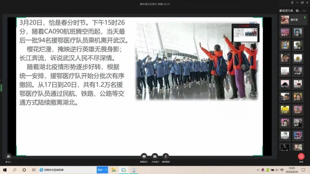 2020年4月27—30日,在英国上市官网365团总支的组织下,各团支部积极学习《最美逆行者,谢谢你为武汉拼过命,武汉永远记得你——各省援鄂医疗队有序撤离武汉》,并以此为契机开展了网络青年团课集中学习。