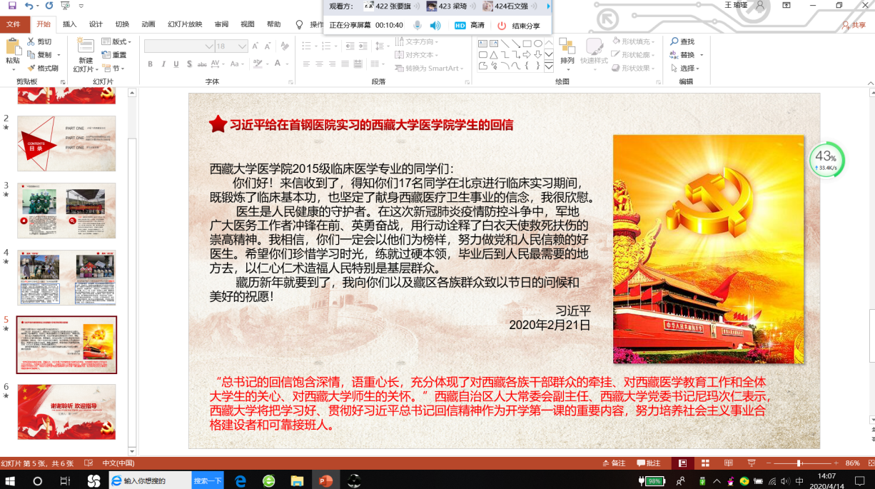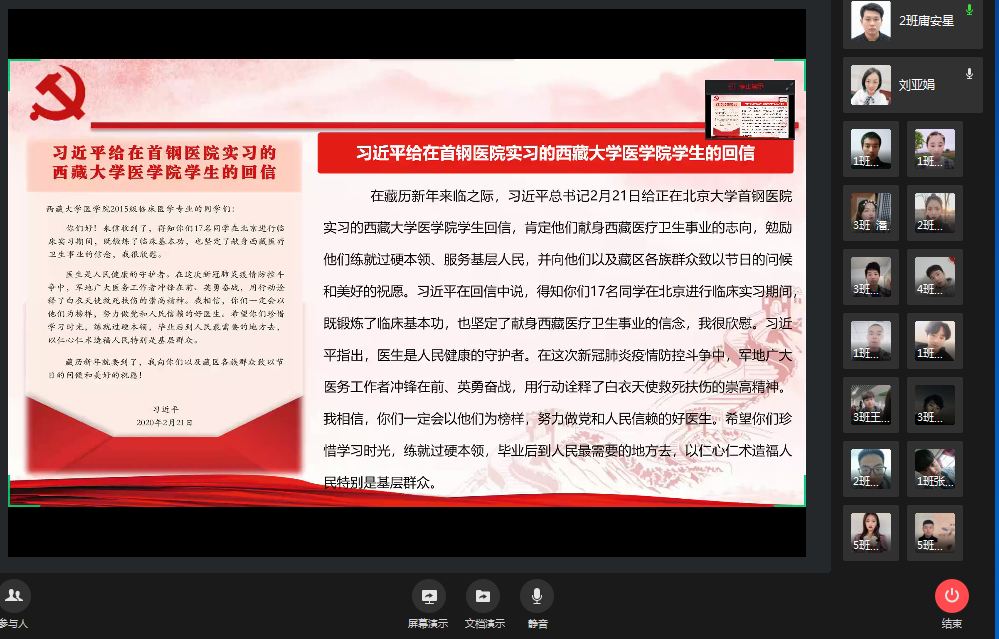 2020年4月13—16日,在英国上市官网365团总支的组织下,各团支部积极学习《习近平总书记给在北京大学首钢医院实习的西藏大学医公司员工的回信》,并以此为契机开展了网络青年团课集中学习。