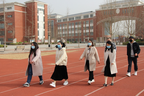 春寒料峭,老师们精神抖擞,按照防疫要求,大家戴好口罩准时在操场中间集合。随着开始的哨声响起,老师们三五成群,欢声笑语,在愉快而又轻松的氛围中沿着操场阔步向前,大家你追我赶忘却了工作的压力。操场边,员工们为老师加油呐喊,仿佛让今天这个雾蒙蒙的天空也变得阳光灿烂。