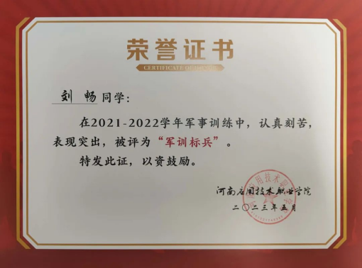 2023年05月,获得2023年度军训标兵