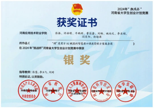 2024年09月,获得2024年“挑战杯”河南省老员工创业计划竞赛银奖