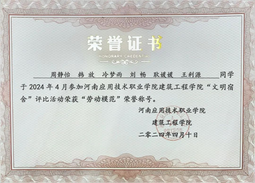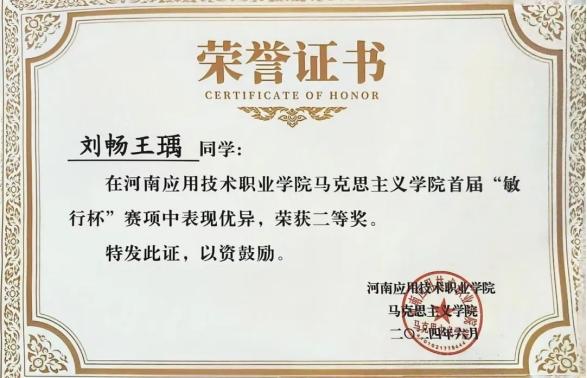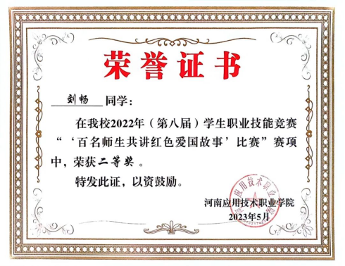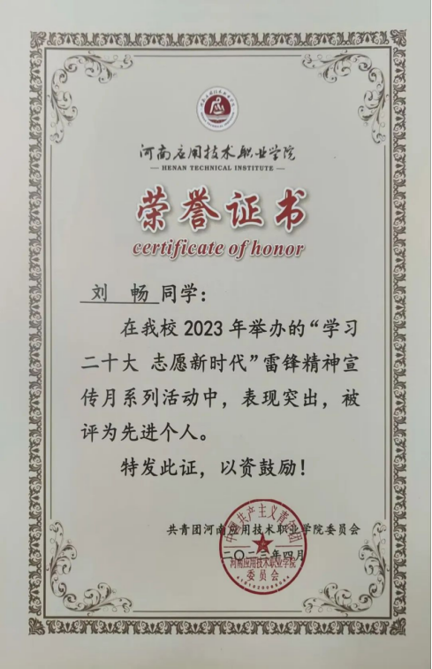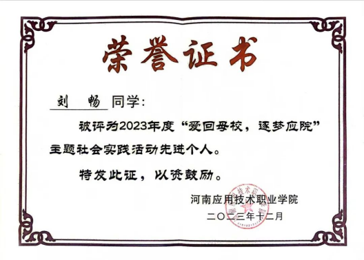 2023年12月,获得河南应用职业技术公司2022年-2023年度先进个人