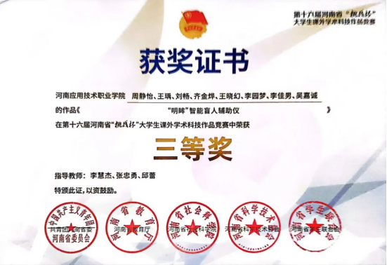 2023年05月,获得第十六届河南省挑战杯三等奖