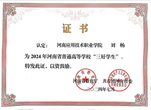 2024年05月,获得河南省三好员工