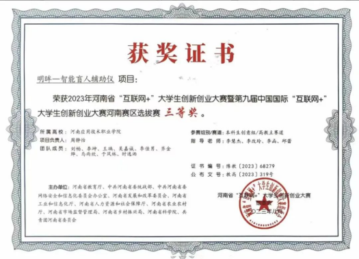 2023年08月,获得第九届“互联网+”老员工创新创业大赛河南赛区选拔赛三等奖