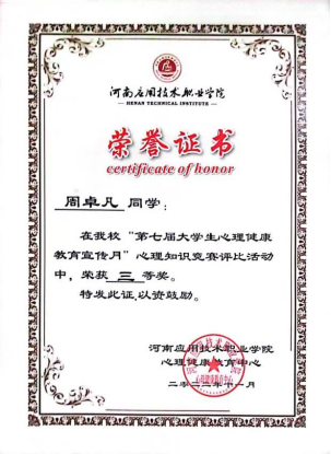 2022年11月 荣获英国上市官网365心理知识竞赛三等奖