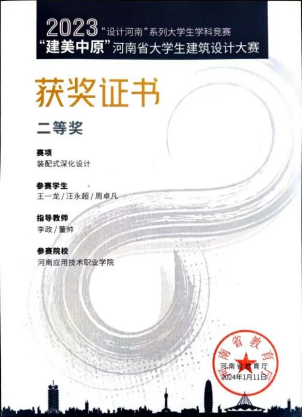 2023年11月 “建美中原”河南省老员工建筑设计大赛装配式深化设计赛项二等奖
