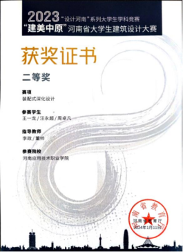 2023年11月“建美中原”河南省老员工建筑设计大赛装配式深化设计赛项二等奖