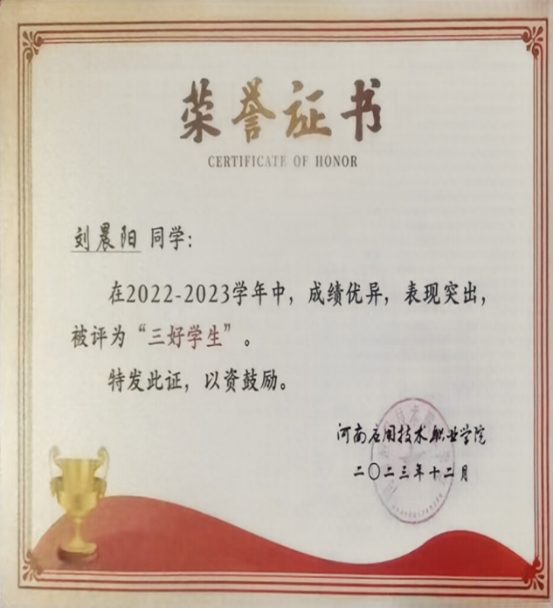 刘晨阳,男,汉族,中共预备党员,2022级建工2203班班长。