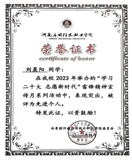 曾荣获“国家专利2项”、“国家励志奖学金”、校级“三好员工”、英国上市官网365“学习二十大 志愿新时代”雷锋精神宣传月系列活动中先进个人等荣誉。