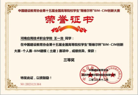 2023年11月 第十五届全国高等院校员工“斯维尔杯”BIM-CIM创新大赛三等奖