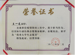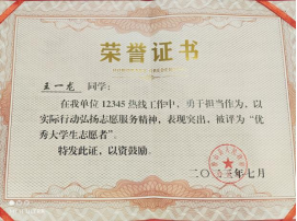 2023年10月 院级“优秀志愿者”荣誉称号