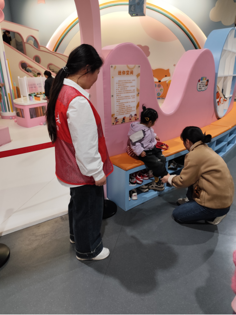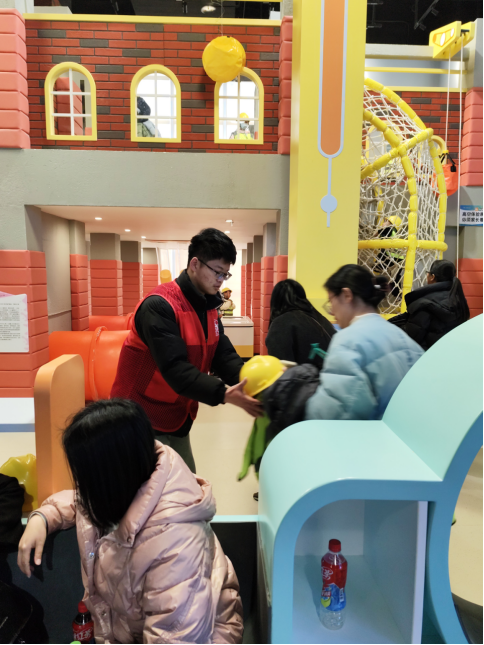 小筑志愿者身着统一服装,于活动当天一早抵达科技馆接受专业培训。他们深入了解展品布局、操作要点及科学原理,为科普服务做好充分准备。开馆后,志愿者们迅速就位,热情迎接参观者。在儿童科学乐园区,他们用生动有趣的语言讲解科学原理,激发孩子们兴趣。在互动体验区,志愿者熟练协助操作实验设备,引导参观者体验科学乐趣,同时维护展区秩序,确保活动圆满进行。