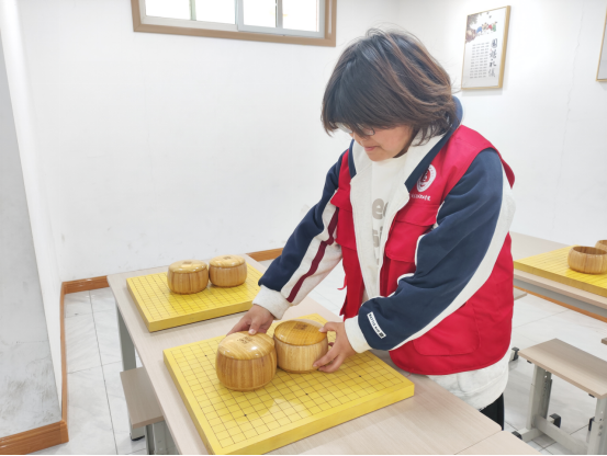 活动当日,志愿者迎着晨曦来到围棋社,经简短培训后迅速投入工作。他们分工整理教室,把桌椅排整齐、清扫角落,让教室干净舒适;面对繁杂棋谱,耐心分类收纳,方便工作人员管理查找;服务学员时,对孩子和家长专业认真,详细介绍知识规则、指导下棋,使不同水平棋手都有收获。为让小朋友深入了解进阶知识,志愿者们组织大家互动教学,让孩子们分组博弈,既提升棋艺,又收获友谊与成长。