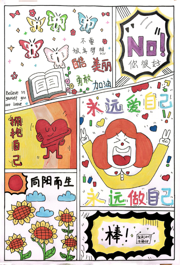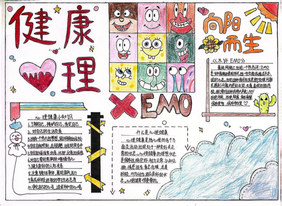 手抄报活动同样精彩纷呈。同学们发挥创意,用色彩斑斓的画笔和精心设计的图案,将心理健康知识与艺术表现形式完美结合。每一份手抄报都独具匠心,不仅传递了积极向上的心理正能量,还展示了同学们丰富的想象力和创造力。