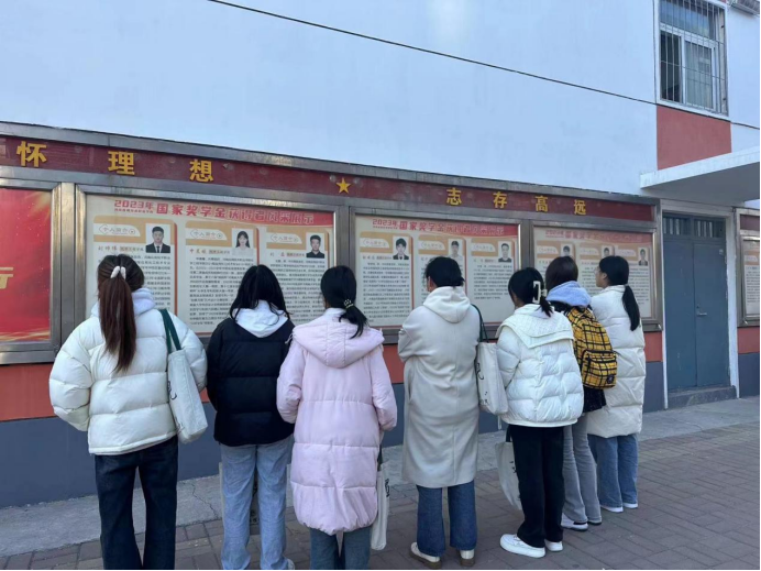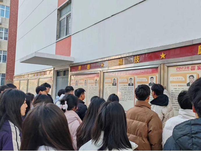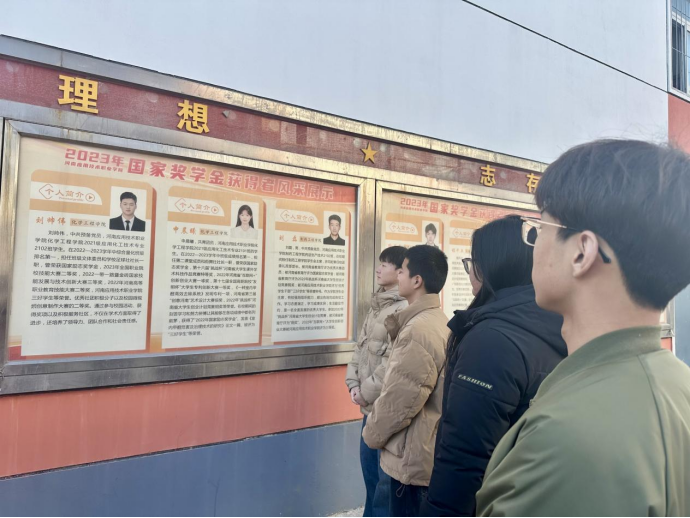同学们通过宣传展板深入了解和学习国家奖学金获得者的先进事迹,深刻感悟到国奖获得者在学习生活、比赛竞赛、社会实践、志愿服务中的心路历程和顽强拼搏,矢志追梦的先进事迹,为全校员工树立了标杆和榜样。同学们从他们身上感受到了“积极向上”的正能量,这是一堂鲜活生动的思政大课。