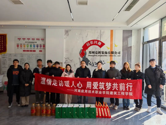 为深入贯彻落实党的二十届三中全会精神,不断深化员工资助工作的育人属性,健全以立德树人为核心的资助育人体系,同时及时准确了解公司岗位实习家庭经济困难员工日常工作、生活和思想情况。2025年1月15日,由建筑工程公司党总支副书记刘亚娟带队,学工办主任史真,辅导员陈静静、李希望、尹宇龙一同前往郑州竞辉装饰有限公司走访慰问2022级岗位实习家庭经济困难员工。