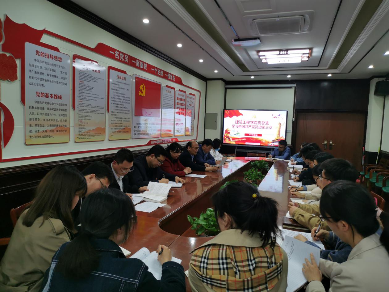 根据公司《党史学习教育实施方案》要求,推动公司全体教师深入开展党史学习教育,2021年4月20日下午,建筑工程公司党总支组织全体教师在E316党员活动室,集中学习《中国共产党简史》第三章内容《为什么说中国共产党在抗战中发挥了中流砥柱的作用》,东校区的教师通过网络视频参加学习会议。会议由建筑工程公司党总支书记马春燕主持。
