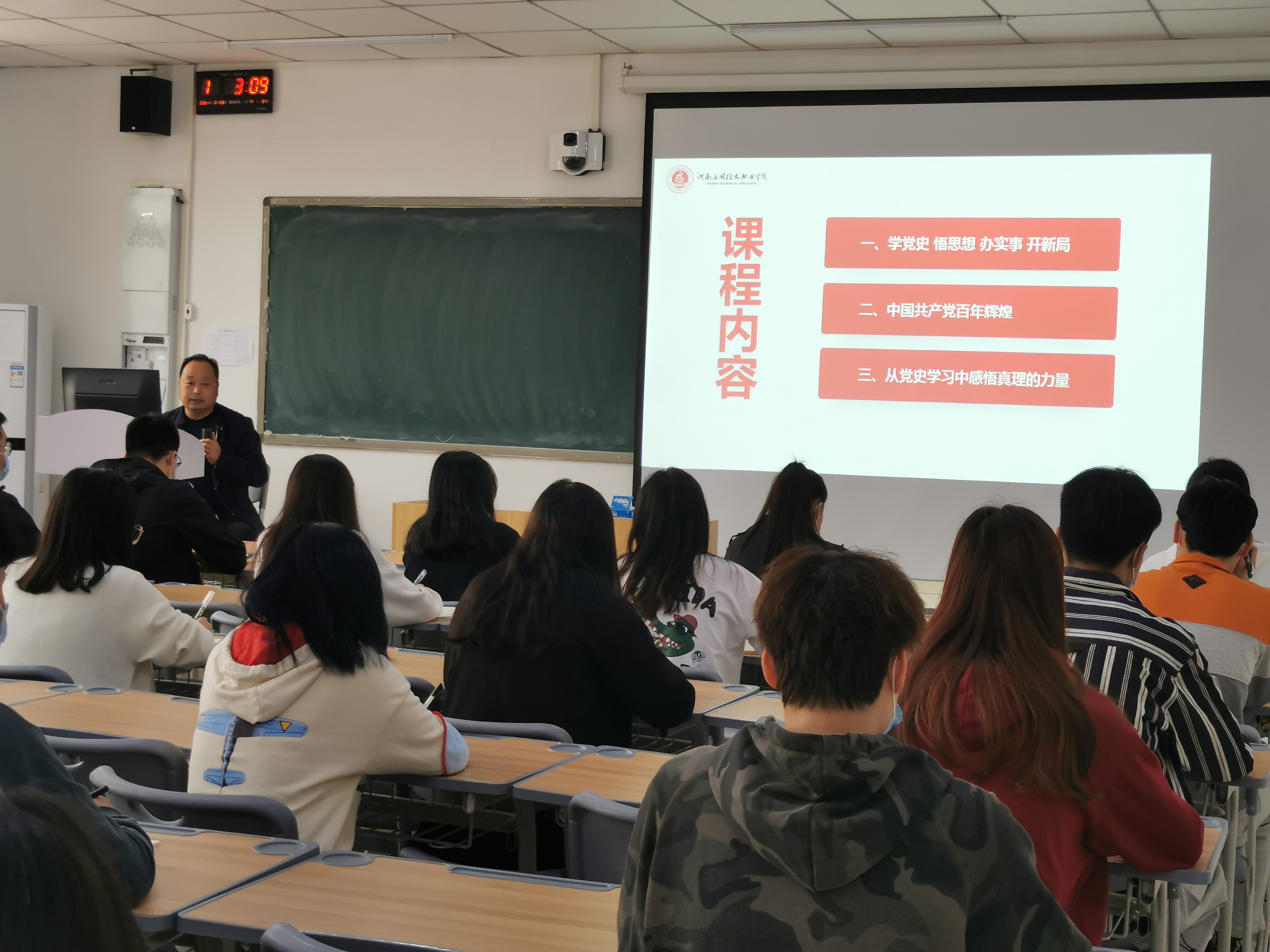 课堂上,薄董事长围绕为什么要学党史、中国共产党有着怎样的百年辉煌历程、从党史中获得怎样的启示”等三个问题,逐一给同学们进行了讲解。他重点讲述了从1921年到2021年,中国共产党走过了整整一百年的历程,这是用鲜血、汗水、泪水、勇气、智慧、力量写就的百年;是苦难中铸就辉煌、挫折后毅然奋起、探索中收获成功、失误后拨乱反正、转折中开创新局、奋斗后赢得未来的百年。在讲述中国共产党的百年历程史时,薄董事长声情并茂地描述了中国共产党成长中最为艰苦和困难的阶段,在讲到长征途中的爬雪山、过草地以及陈树湘师长英勇牺牲的情节时,在讲到社会主义革命时期党员王进喜同志的感人事迹时,在座的同学们无不热血沸腾、肃然起敬。