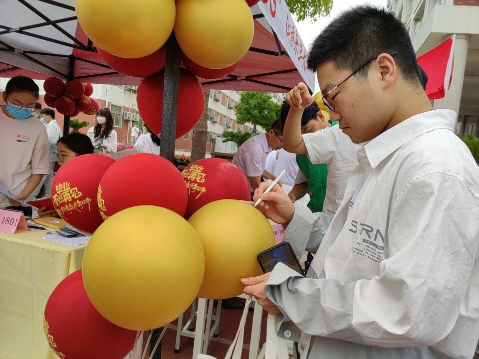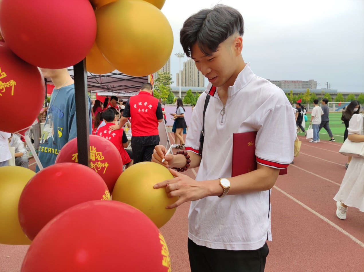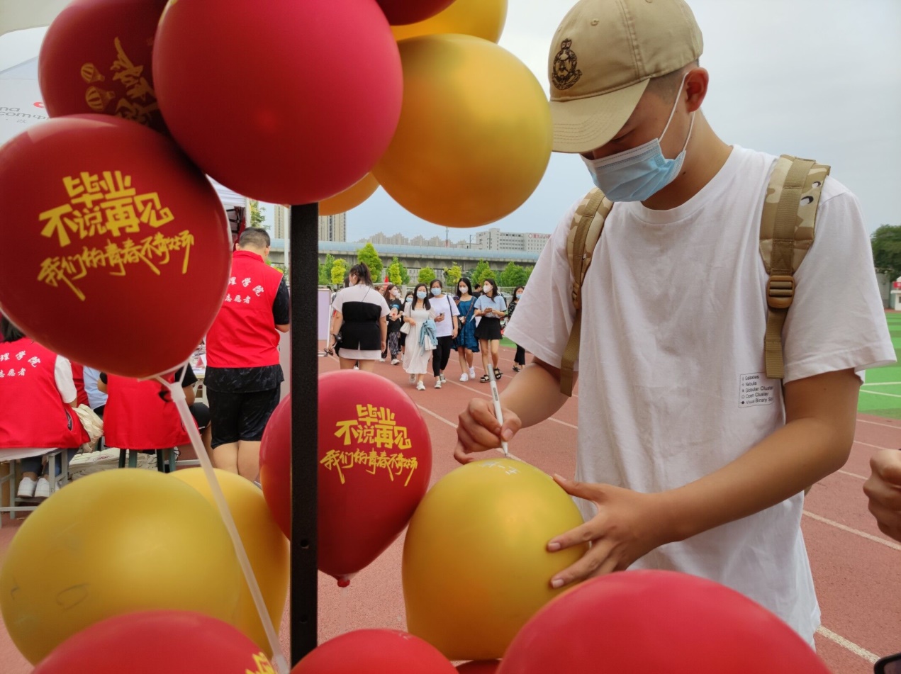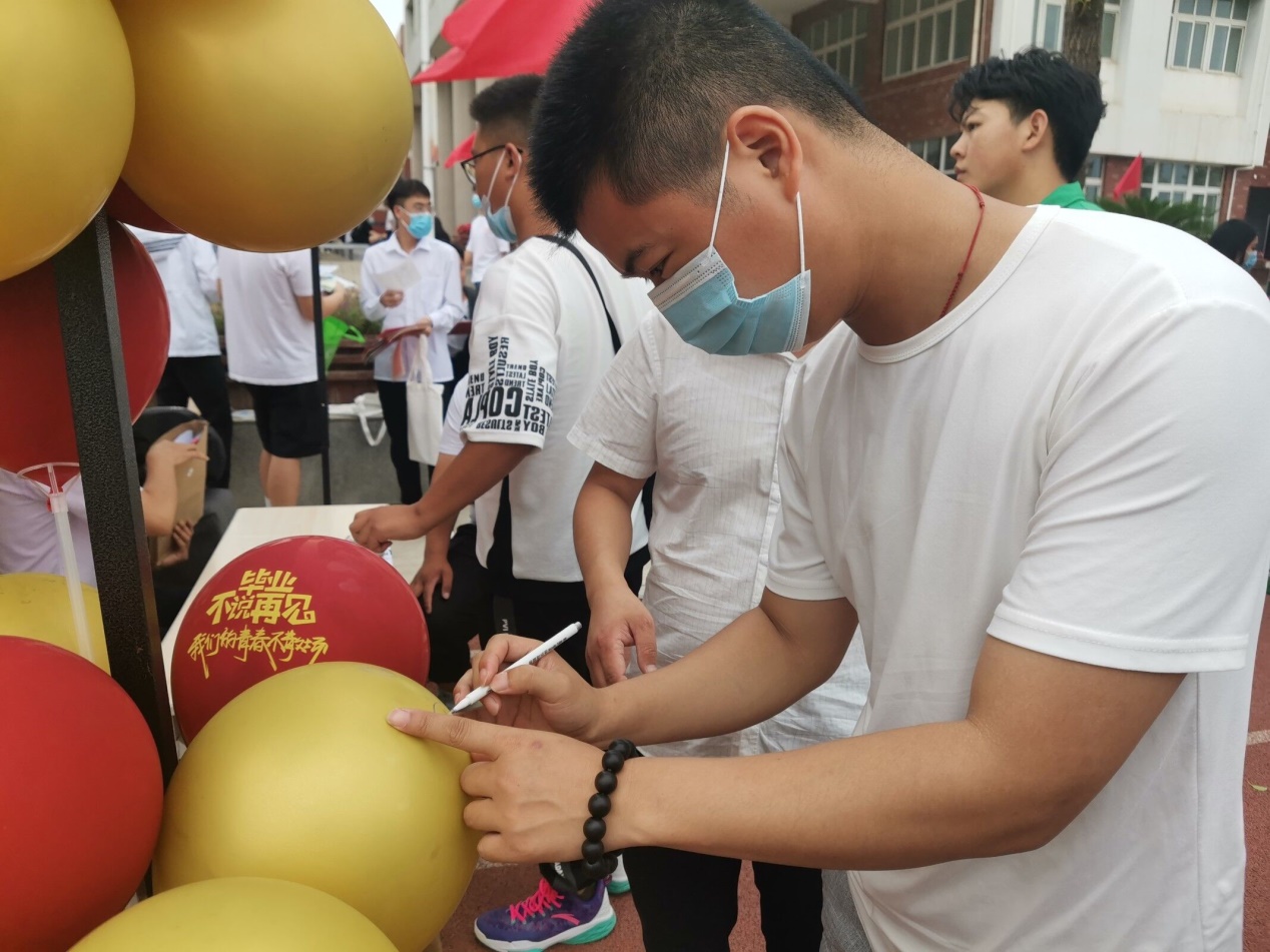 2021届毕业生到达现场后,兴奋地找到自己的辅导员,分享着自己在岗位上的所见所感,表达着即将离别的不舍,随后辅导员为每位同学颁发毕业证书,并带领他们在回忆气球上签字等一系列毕业纪念活动,给同学们留下美好的回忆。