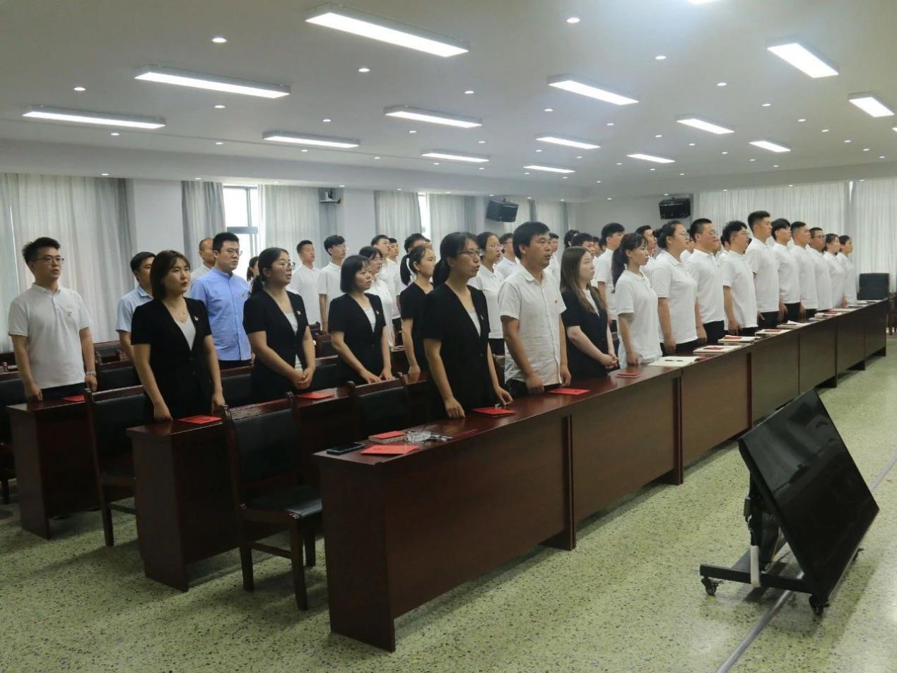 会议进行第三项,在公司党委委员薄新党的领誓下,全体党员在党旗下举起右拳,对党深情告白和郑重承诺,这是入党程序中最为庄严和神圣的时刻,既标志着政治生活新征程的开启,也预示着责任使命的重担在肩。