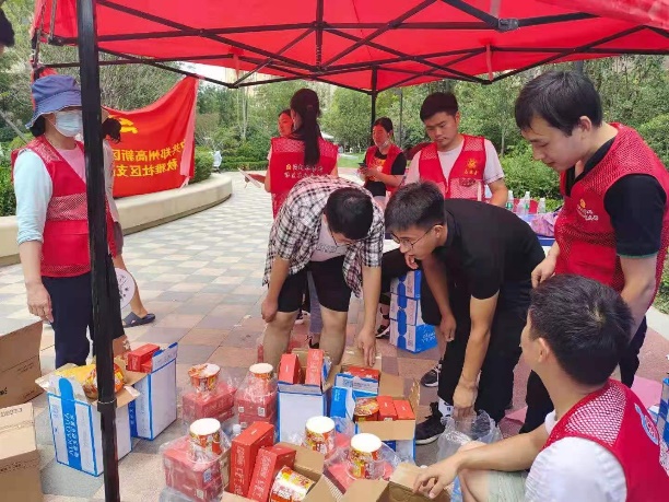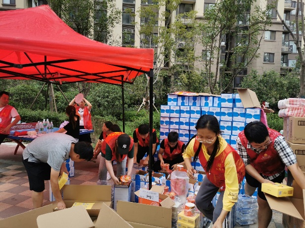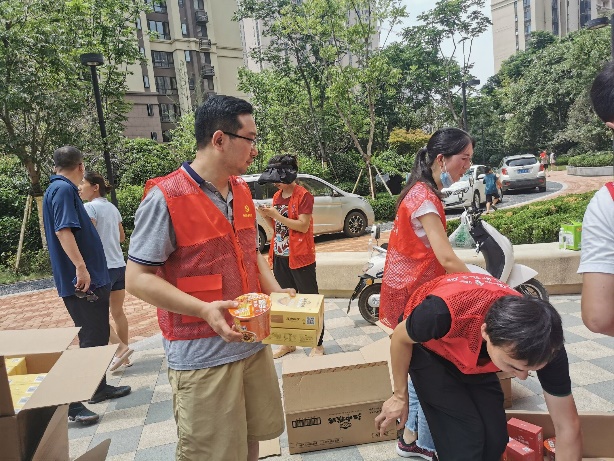 险情就是命令,防汛就是责任。做好防汛救灾工作是当前的一项重大政治任务。7月24日上午9时,当建筑工程公司党总支书记马春燕得知秋雅社区分发救灾物资缺人手的时候,她再次召集7名党员教师和5名员工党员走进社区支援。大家负责分装发放9、10、11、12四栋楼物资,遇到行动不便的老人或者带孩子的妇女时,大家帮忙运送上楼。