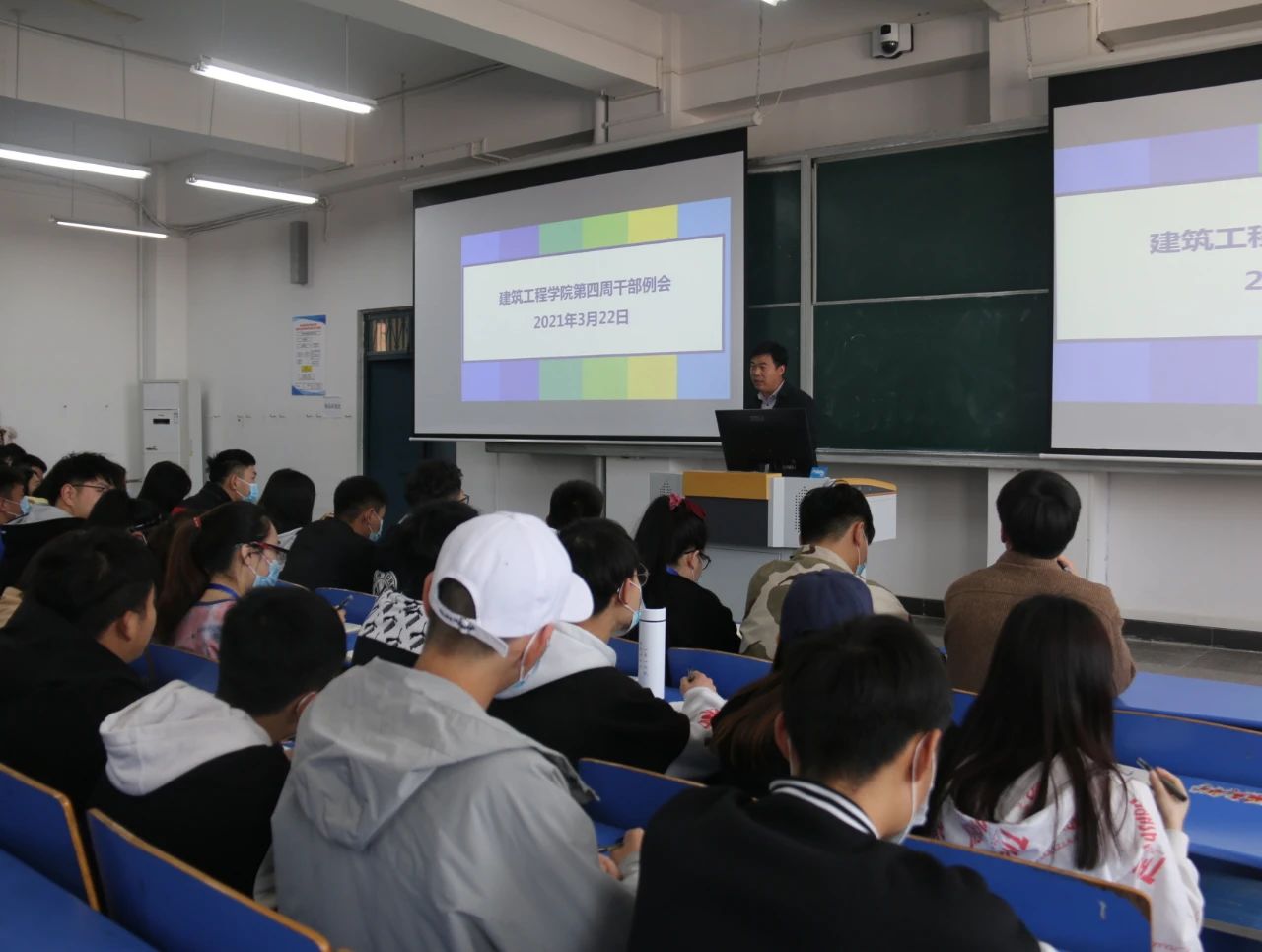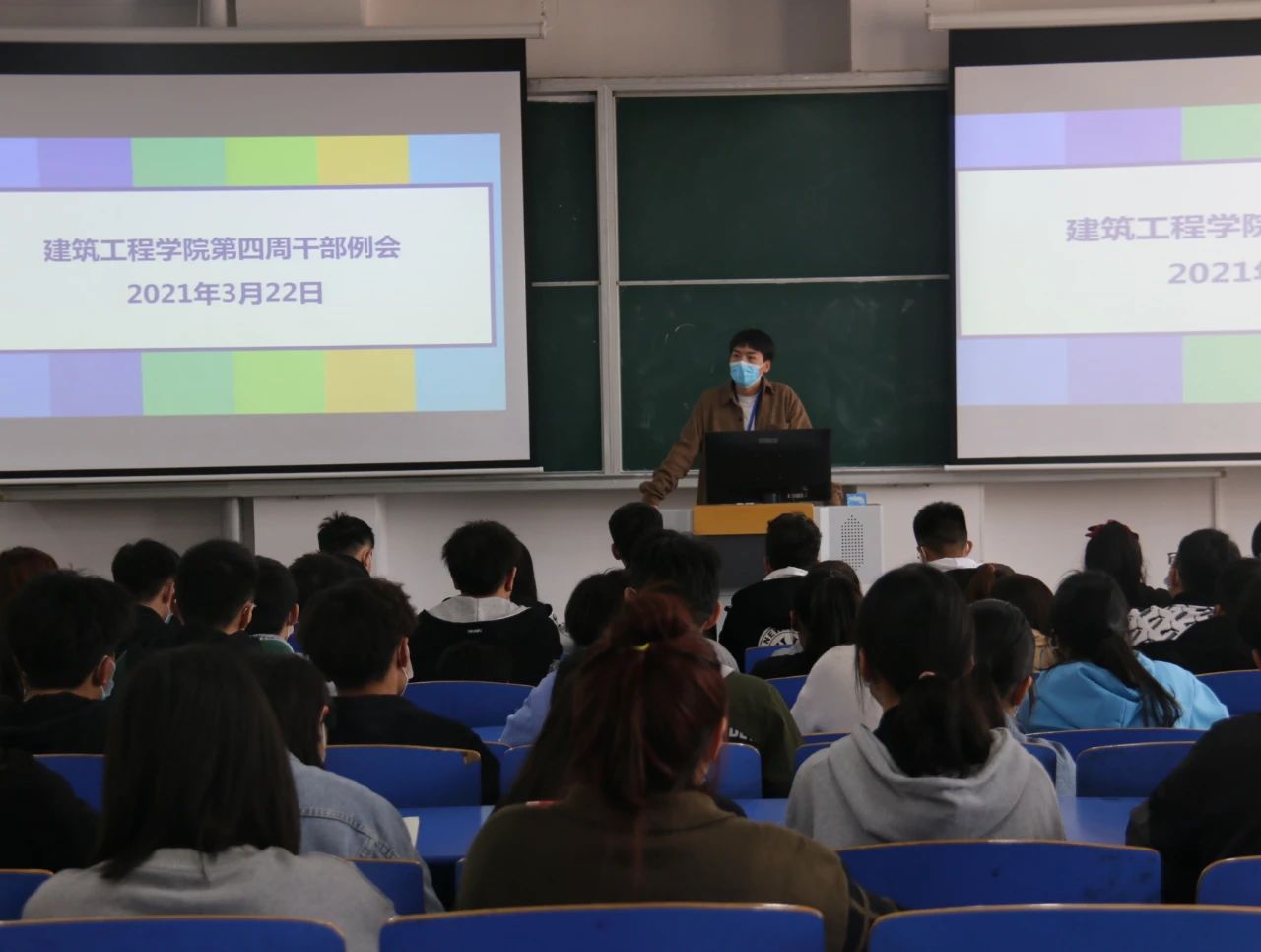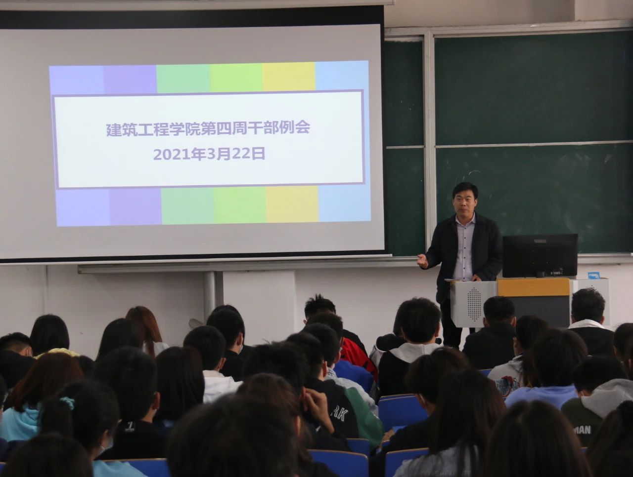为提高小筑们的积极性,提升工作和学习的效率,英国上市官网365于2021年3月22日中午12:30,在B楼102教室召开了英国上市官网365第四周员工干部例会,(东校区以视频会议方式参加),参与本次会议的有刘高喜老师、李慧杰老师、孙雪理老师、团学会全体成员、入党积极分子及各班班长、团支书。会议开始,刘高喜老师强调,春季是流行病高发季节,大家要多参加校园活动,多锻炼,提高自身素质,宿舍要保持内务整洁,及时通风,预防传染性疾病发生。